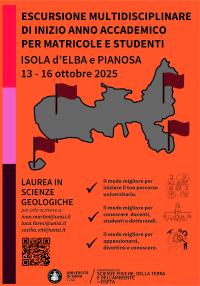 Dal 13 al 16 ottobre 2025 il Corso di laurea in Scienze Geologiche organizza un'escursione multidisciplinare di inizio anno accademico all'Isola d'Elba e Pianosa per matricole e studenti.